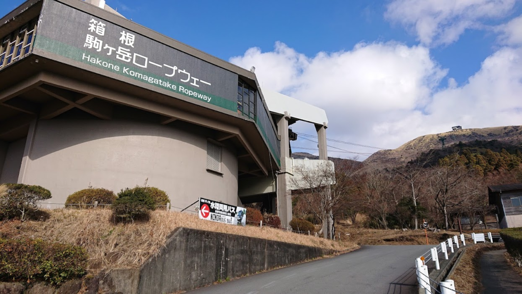 垂直方向に、駒ケ岳ロープウェイに乗ると、山頂にある「箱根神社 元宮」